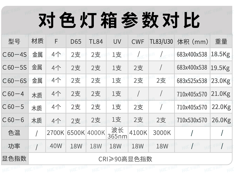 国际标准光源对色灯箱就是对色灯箱里面标配的灯管是符合国际标准的灯管,每个光源的色温、照度、显指都是符合国际标准的,装在对色灯箱箱体里面,从而使对色灯箱达到一个符合国际标准的标准环境,现在市面上通用型的标准光源对色灯箱一般都说多光源,包含D65、D50、D75、TL84、CWF、U30、UV、F/A灯等。