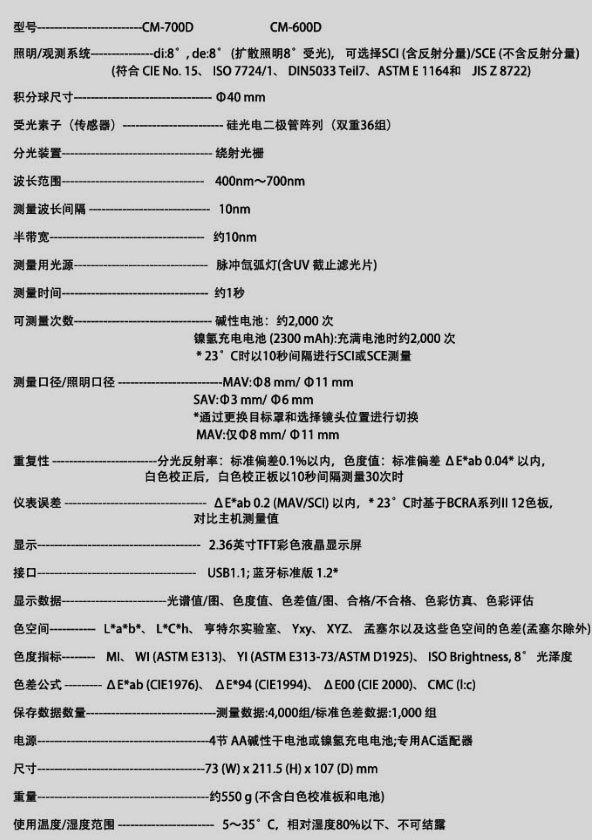 CM-700d/600d:结构紧凑、轻巧便携的分光测色计,配有无线蓝牙通讯功能及彩色LCD显示,给您提供完美的简便及可操作性!