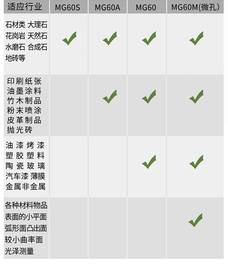 MG60系列光泽度仪分度值分别精确到1-0.1GU,四个规格颜色可选,满足不同客户需求;仪器一键自动校准,无需手动校准,自动测量读取数据,无需按键操作,使光泽测量变得如此简单。