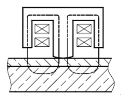 早期的产品采用指针式表头,测量感应电动势的大小,仪器将该信号放大后来指示覆层厚度,现在的电路设计引入稳频、锁相、温度补偿等地新技术,利用磁阻来调制测量信号,还采用设计的集成电路,引入微机,使测量精度和重现性有了大幅度的提高,适用导磁材料上的非导磁层厚度测量,导磁材料一般为:钢铁银镍,此种方法测量精度高。