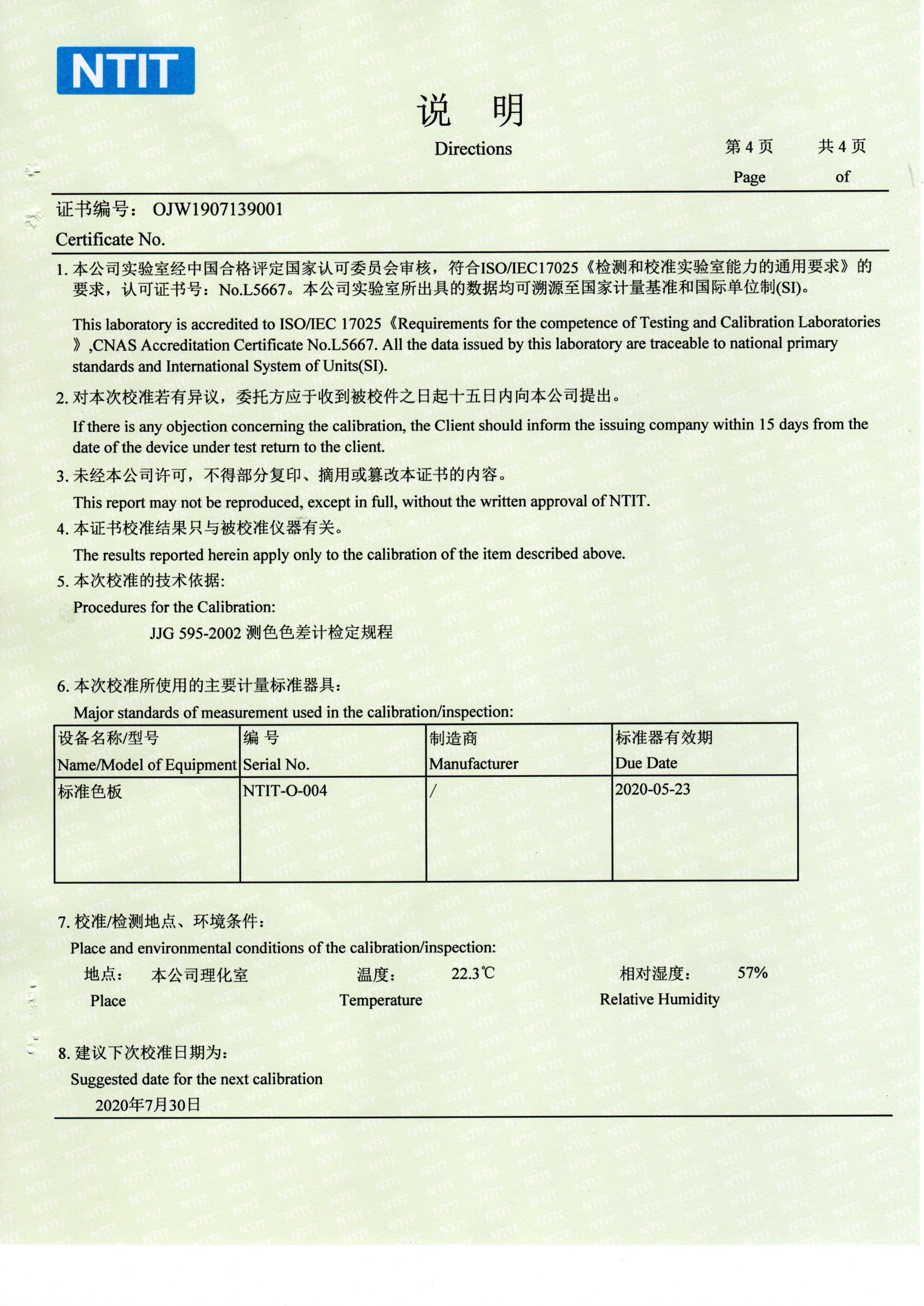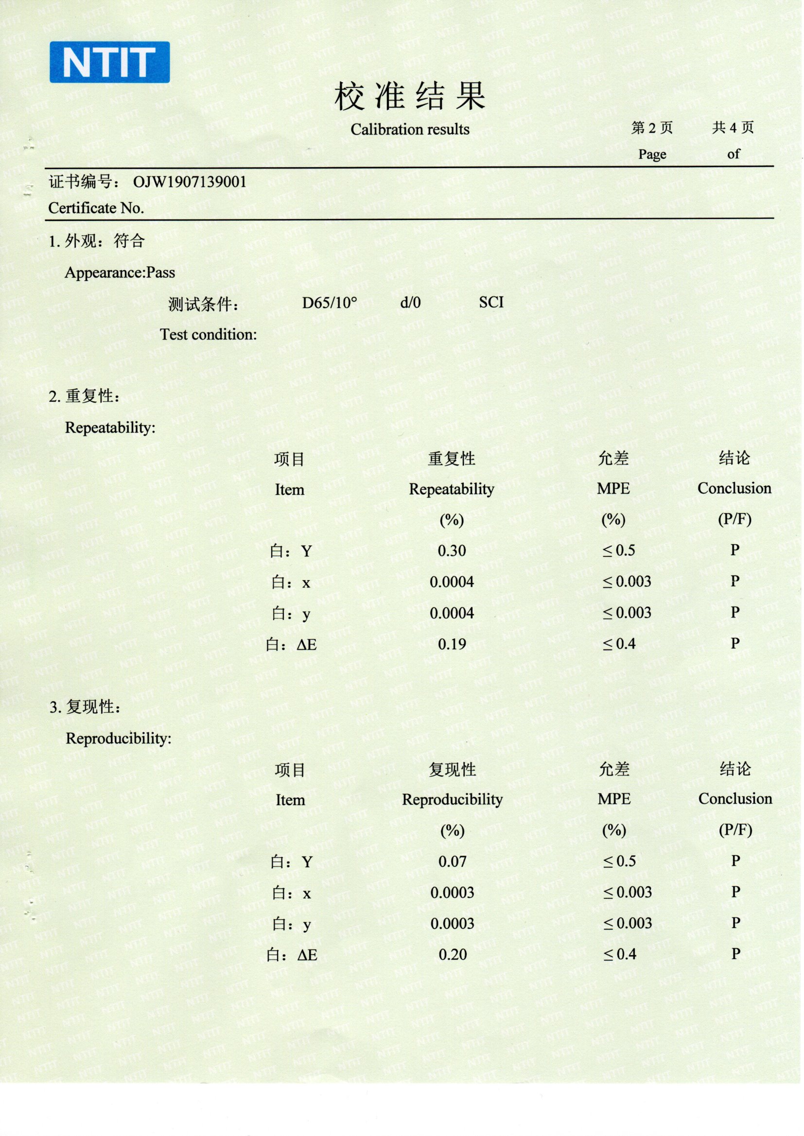 色差仪国家计量测试中心国检检测报告SCM CNAS NTIT校准证书。