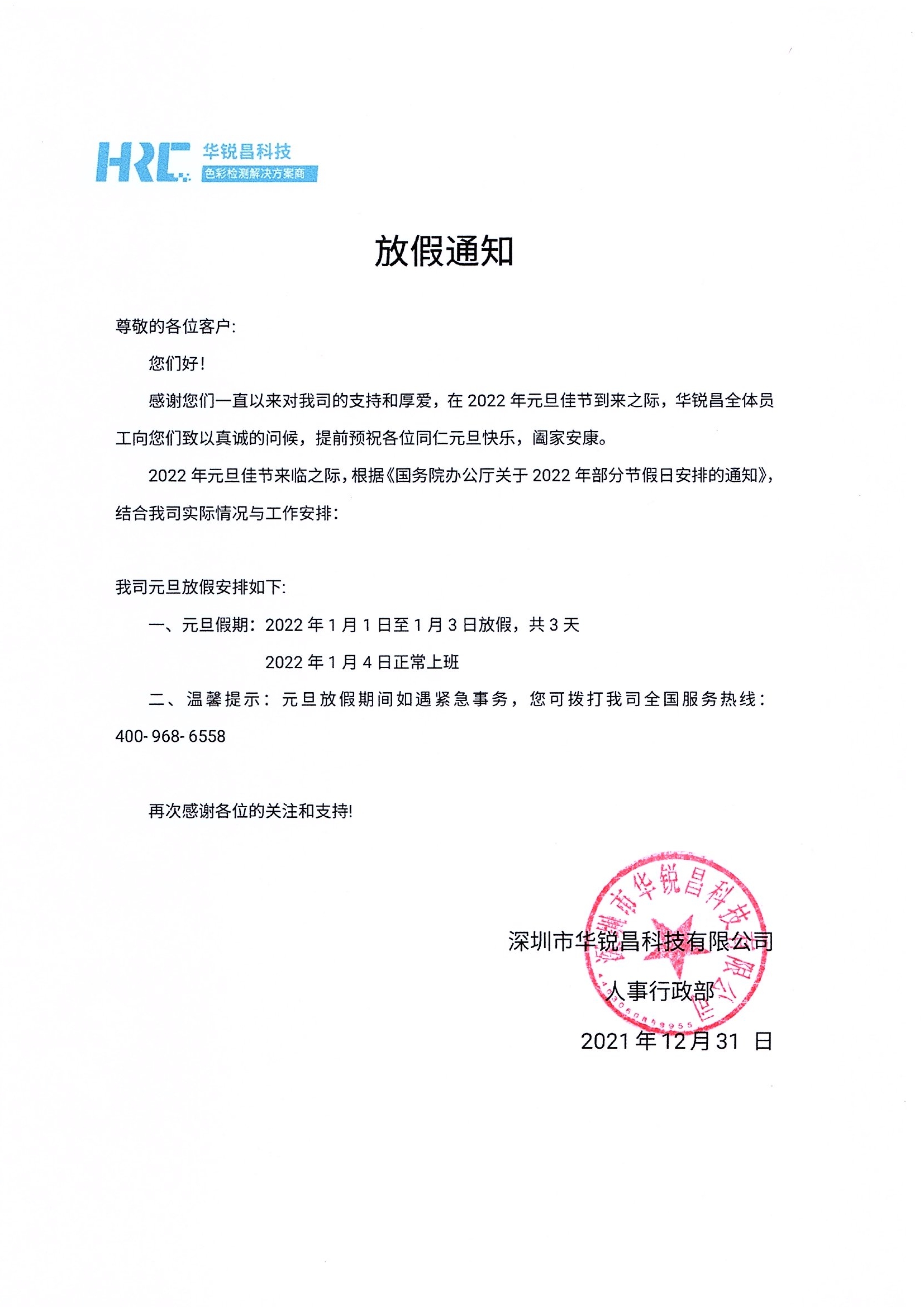 感谢您们一直以来对我司的支持和厚爱,在2022年元旦佳节到来之际,华锐昌全体员工向您们致以真诚的问候,提前预祝各位同仁元旦快乐,阖家安康。