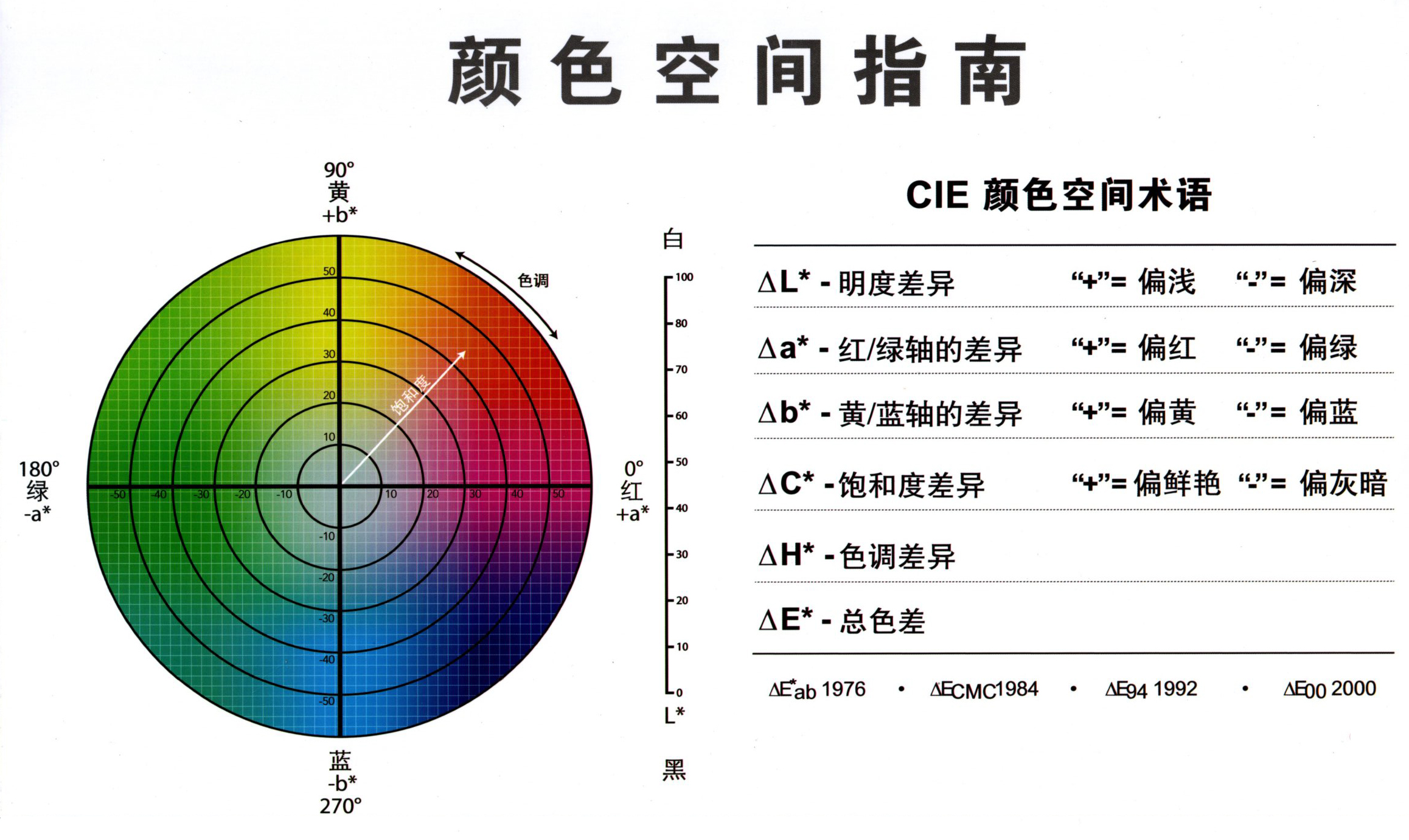 “L” 表示黑白,也有说亮暗,+表示偏白,-表示偏暗